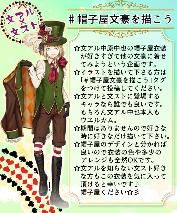 帽子屋文豪を描こうのtwitterイラスト検索結果 古い順