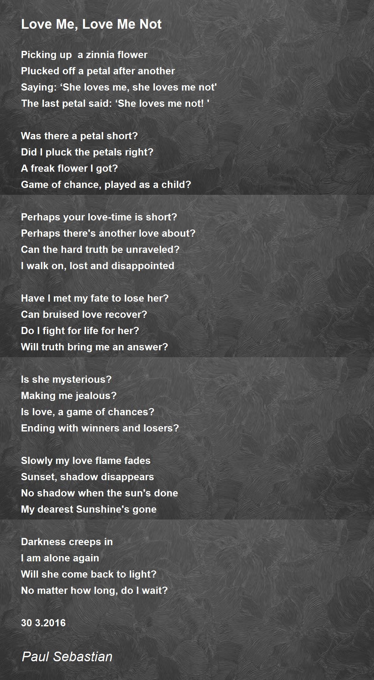 Love Me Love Me Not By Paul Sebastian Love Me Love Me Not Poem